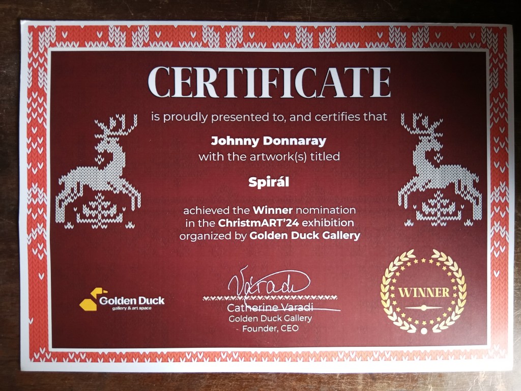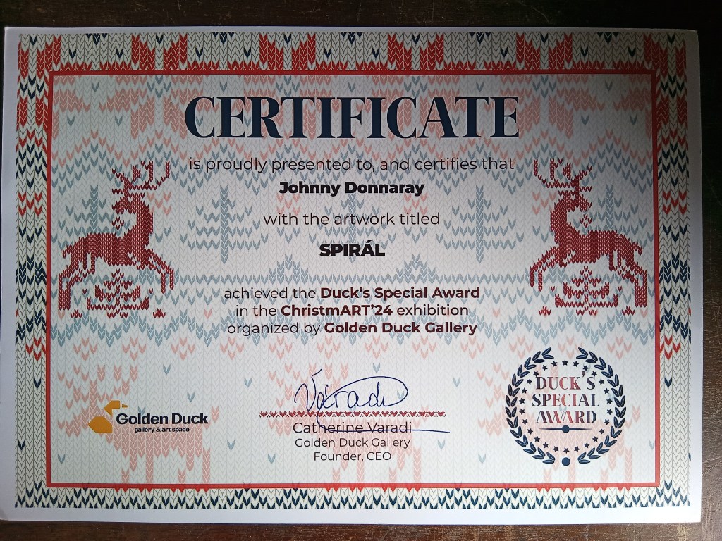 Thanks to a fabulous exhibition and the Duck ́s Special Award of the golden Duck Gallery in Budapest / Hungary, I share this great piece of my artistic career with the unique artist Nora Zang.