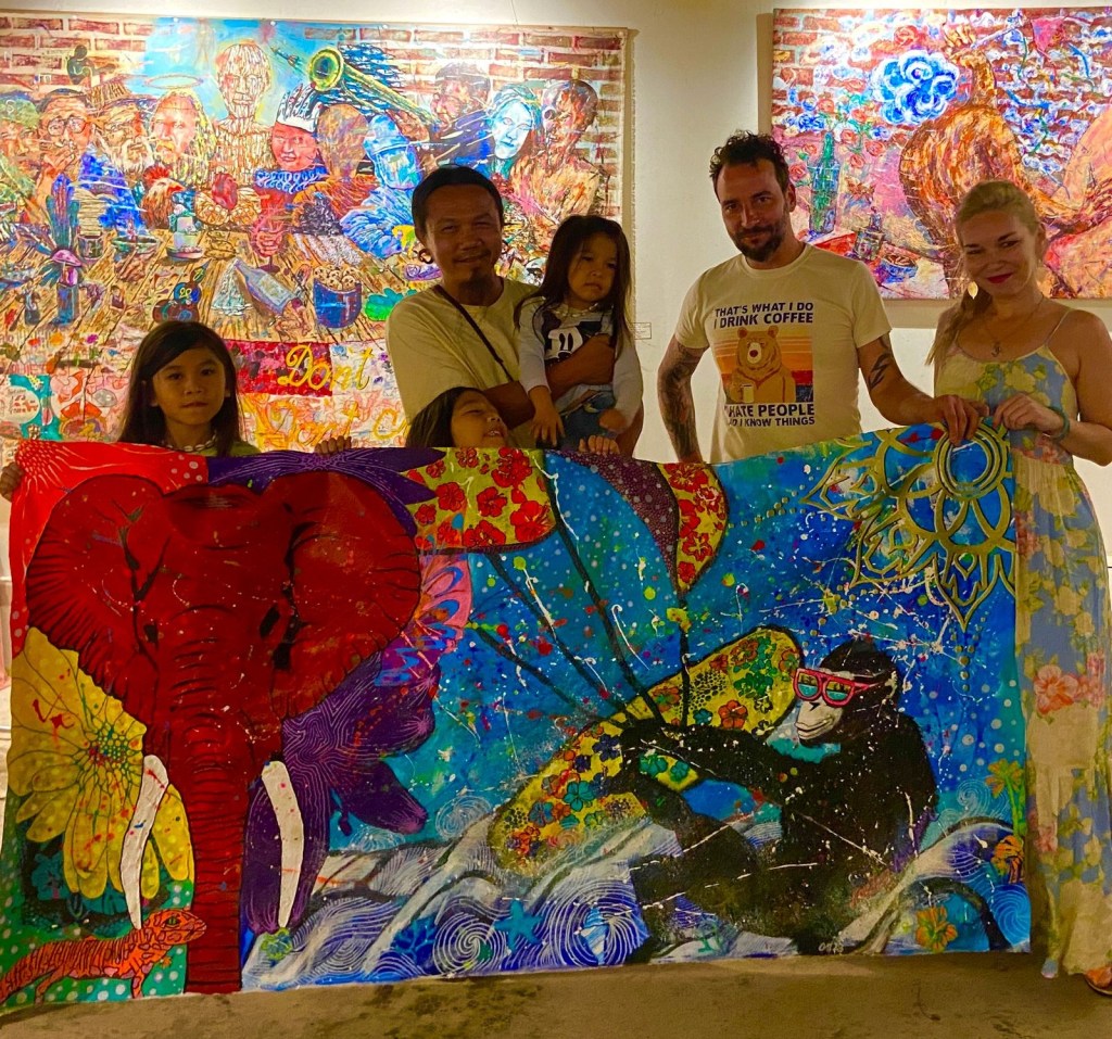 Nora Zang and I are so proud that our painting „อิสรภาพแห่งอํานาจ/Freedom of energy“ has found a new home and can now be viewed in the wonderful Maliblues Art Gallery in Chumphon, where we met many nice and creative people . If this painting is sold, the money will be donated to a charity.
