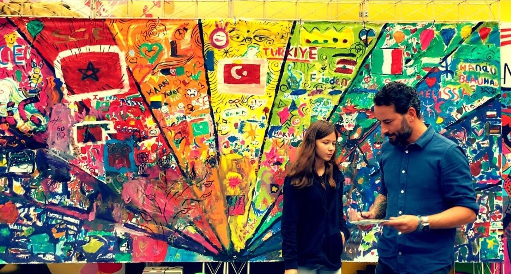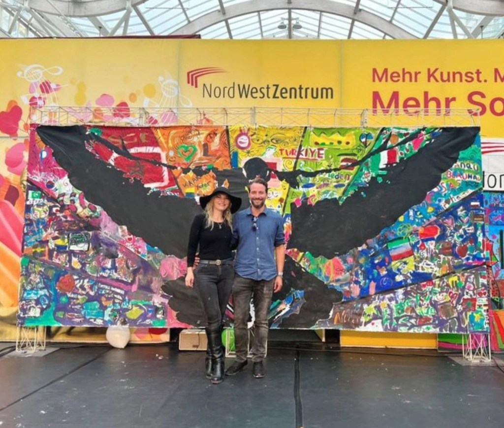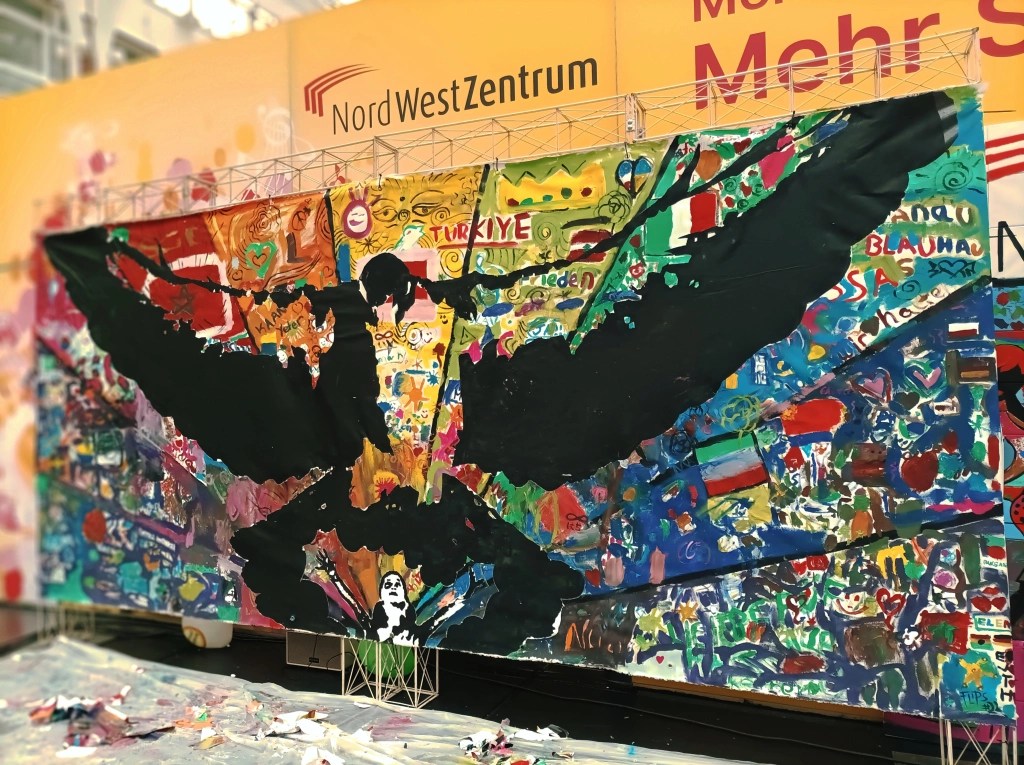 Art is not just there to look at, admire, reflect, discuss or fascinate – art is communicative, creates bridges and connects people! Under the motto „Paint for Peace“, the fabulous Nora Zang, over 100 visitors and I created a work of art as a symbol of peace. An expressive and creative image was created using many colors.