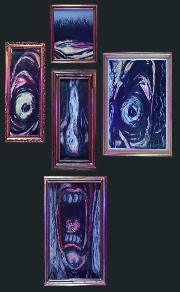 When you look at this work you feel a slight sensation when you turn your head Tension in the throat. This discomfort is deliberately chosen because of our globe Unfortunately, I’m currently feeling much worse stress. The picture was used Motor oil painted, the valuable liquid that we unearth.